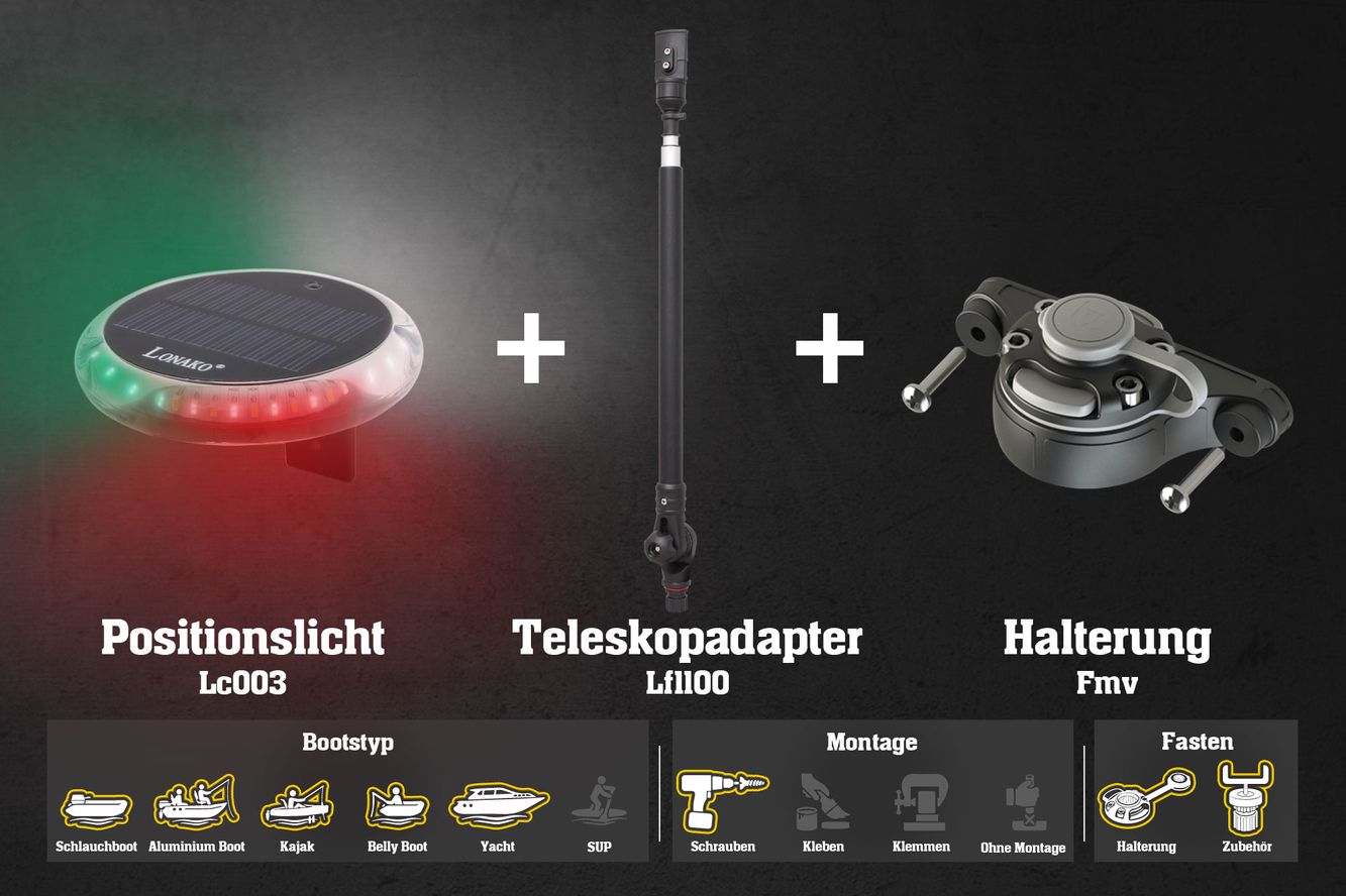 Um nachts auf dem Wasser fahren zu dürfen, ist eine Positionserkennung Pflicht! Alle Teile der Lampe wurden aus anti-UV PMMA hergestellt und können somit jeder Wetterlange standhalten.