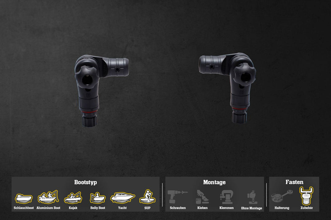 Fasten 2 x Paddelhalter mit Stern-Adapter für (Ø 32 mm) Aluminiumstangen Ruderdolle