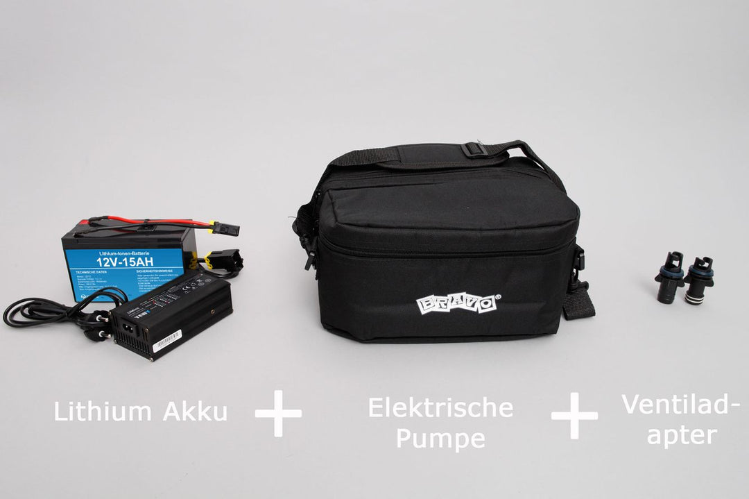 Set: Lithium Akku 12V-15Ah + Bravo BTP 12V Elektropumpe für Schlauchboote