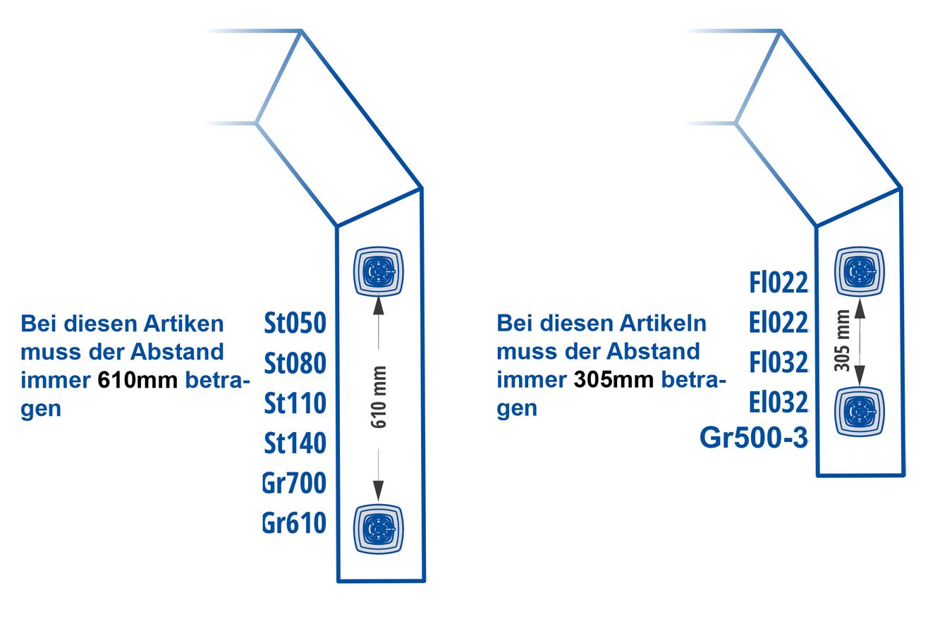 • die mitgelieferten 2 x Halterungen sind mit dem gesamten Zubehör von Fasten kompatibel