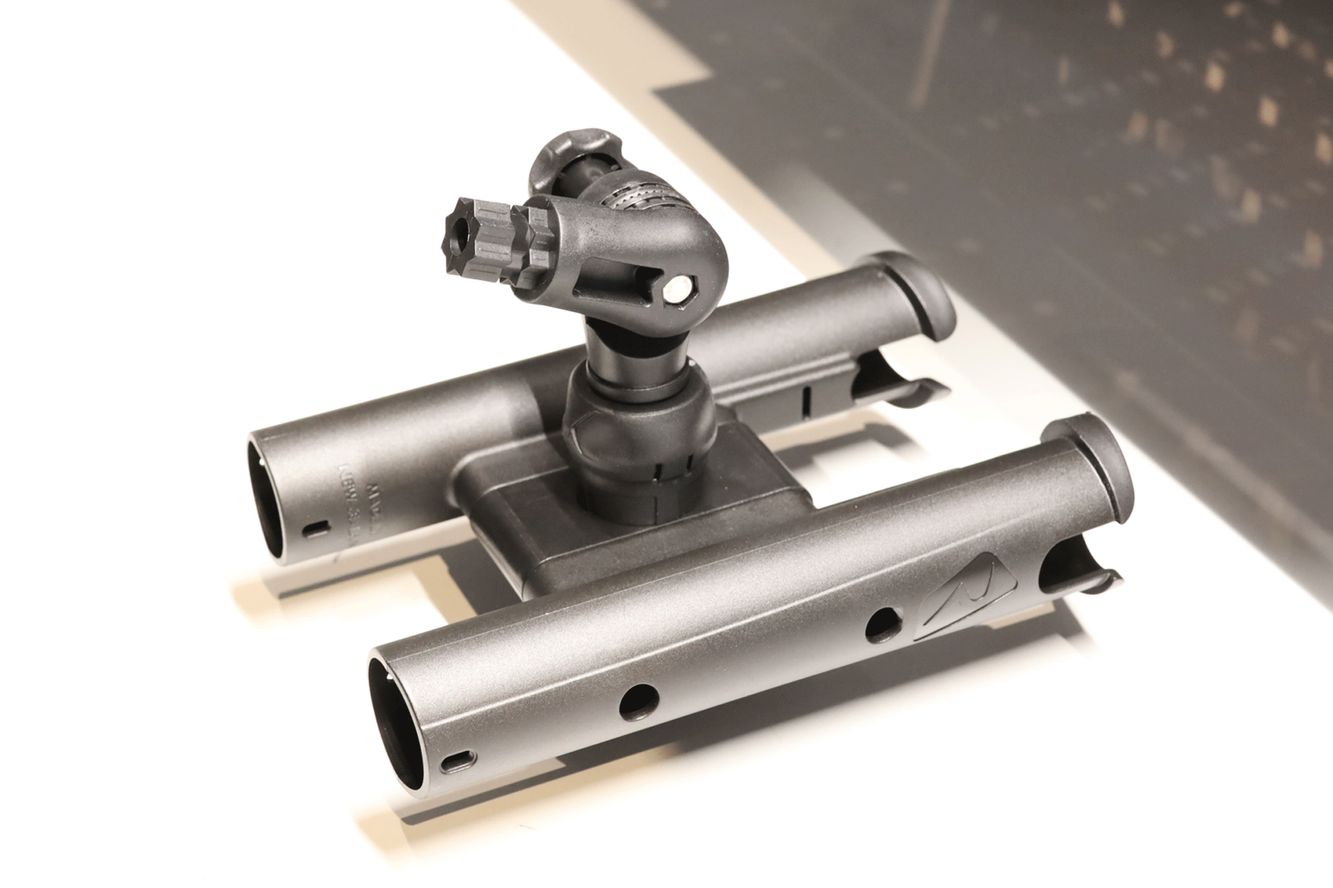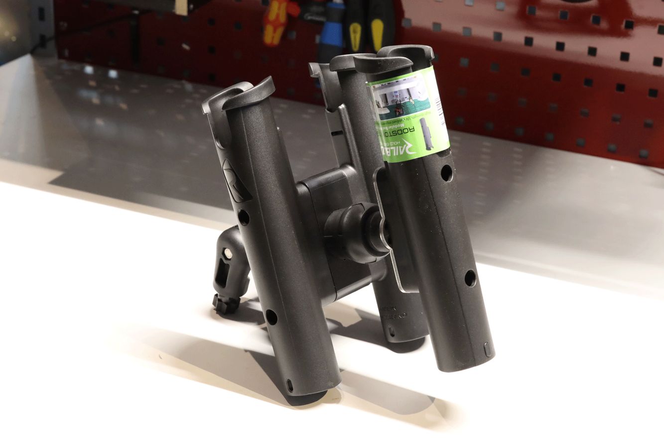 Dank der durchdachten Konstruktion können zwei Rutenhalter sicher und stabil befestigt werden. Zusätzlich befindet sich an der Vorderseite eine universelle Halterung, die es Ihnen ermöglicht, bei Bedarf einen dritten Rutenhalter oder ein anderes Fasten-Zubehör unkompliziert anzubringen.