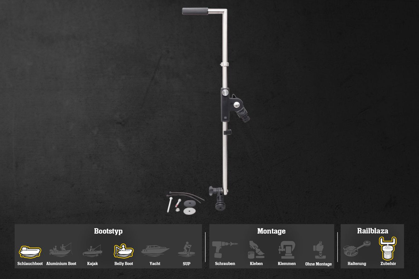Die Geberstange wurde nicht von Railblaza hergestellt, verfügt jedoch über einen originalen Railblaza-Stern und ist somit mit Railblaza-Halterungen kompatibel.