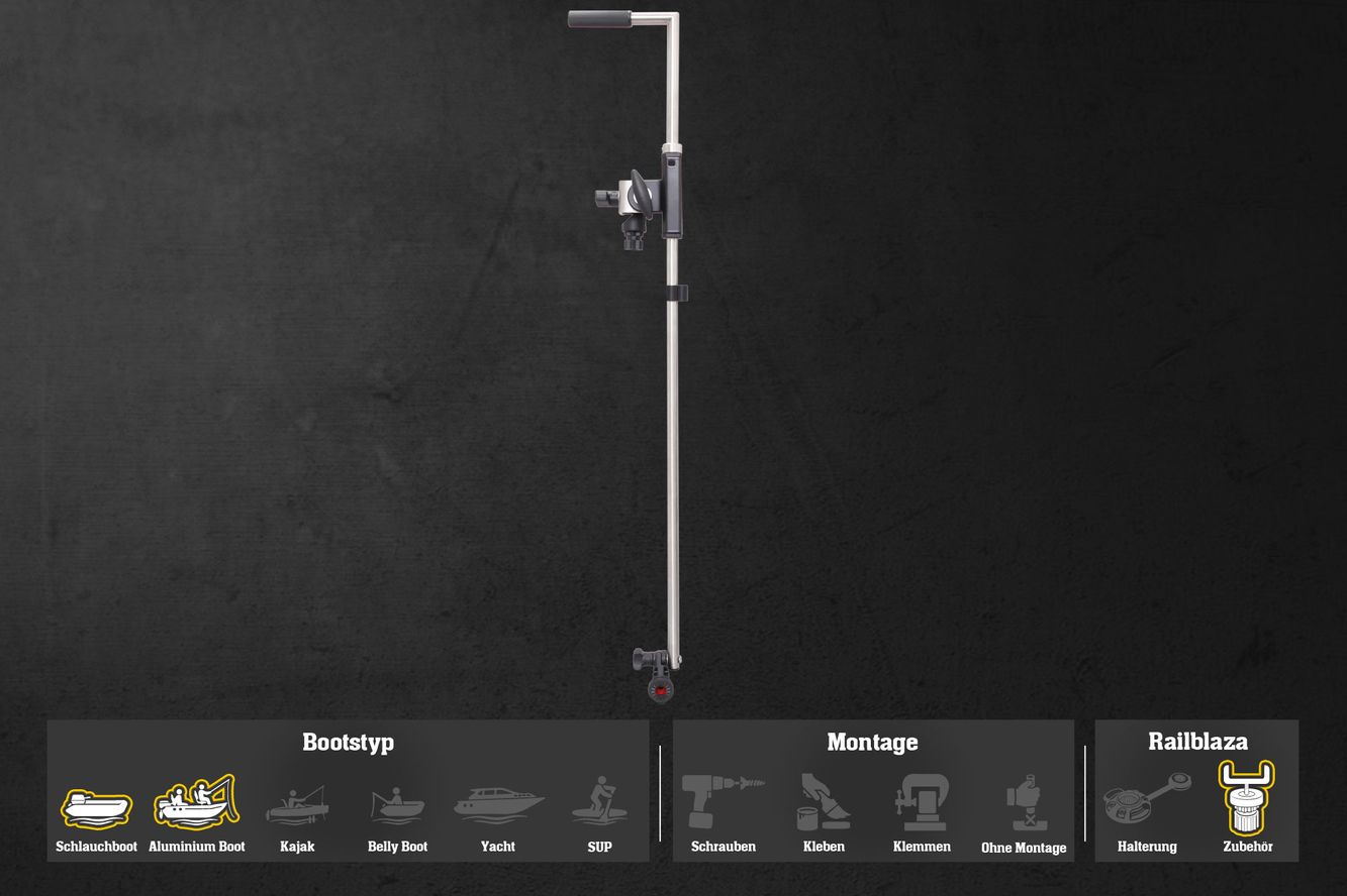 Die Geberstange wurde nicht von Railblaza hergestellt, verfügt jedoch über einen originalen Railblaza-Stern und ist somit mit Railblaza-Halterungen kompatibel.