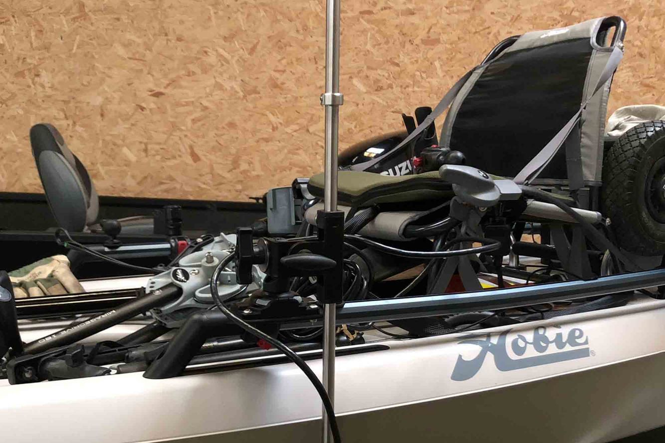 Diese Version wurde auf vielfachen Wunsch von Kajakanglern neu gestaltet. Die bisherige Geberstange war zu kurz und konnte nicht in Fahrtrichtung nach oben gedreht werden. Infolgedessen wurde die Stange von 600 mm auf 850 mm verlängert und ein Winkel hinzugefügt, der das Hochdrehen ermöglicht. Die alte Version ist nun ideal für Belly Boote geeignet, während diese hier perfekt für Kajaks und Schlauchboote ist.