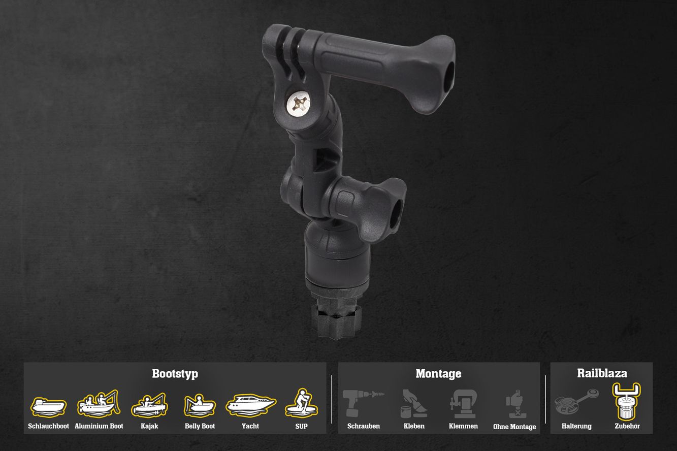 Railblaza Kamerahalter für 1x GoPro oder 1x Kamera Mit 1/4“ Gewind rotier & neigbar